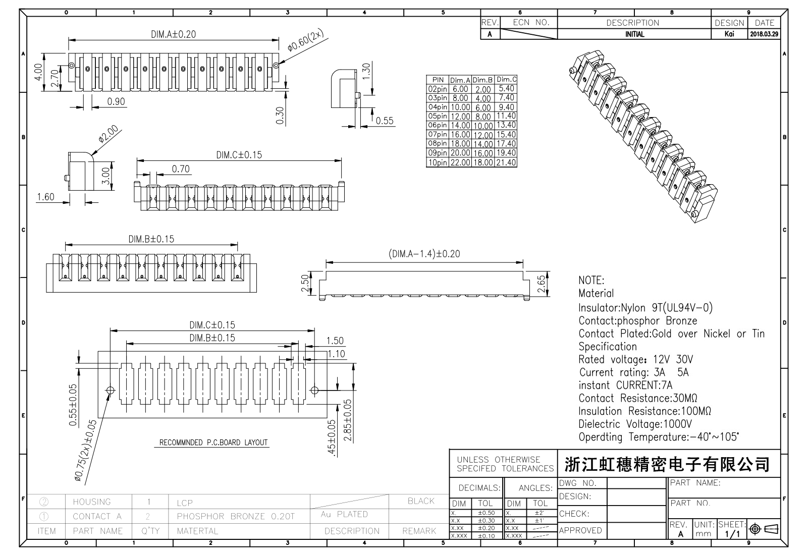 表面鍍層:金在鎳/錫之上,鍍層厚度3U