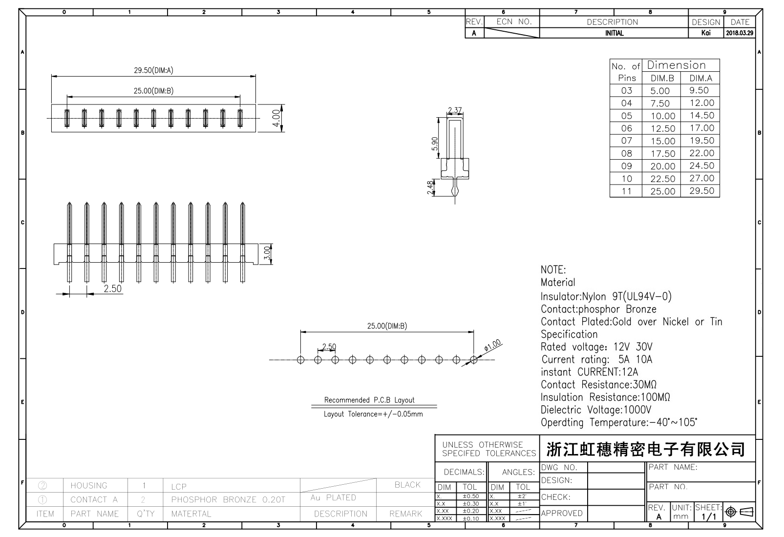 表面鍍層:金在鎳/錫之上,鍍層厚度3U″