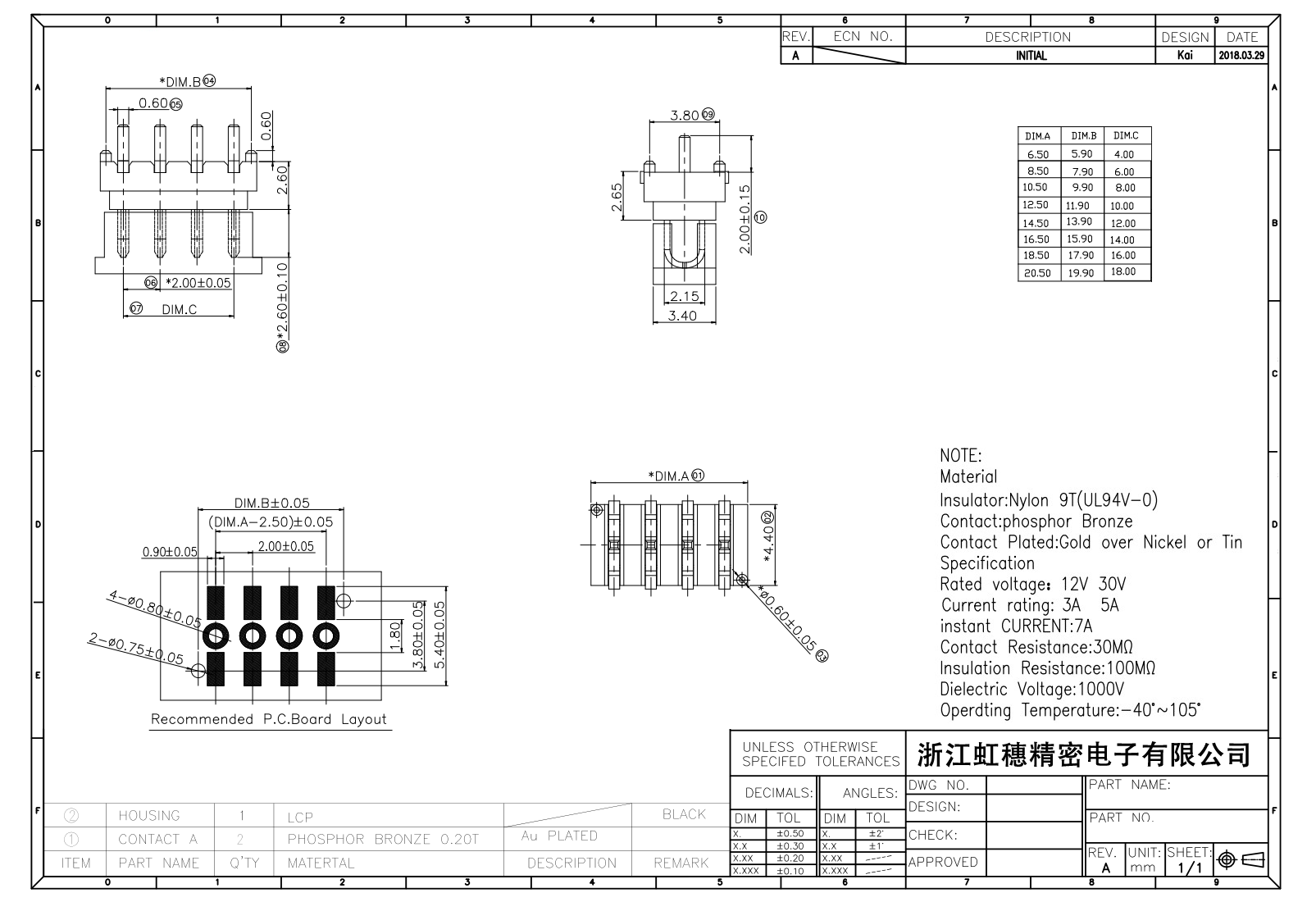 表面鍍層:金在鎳/錫之上,鍍層厚度3U
