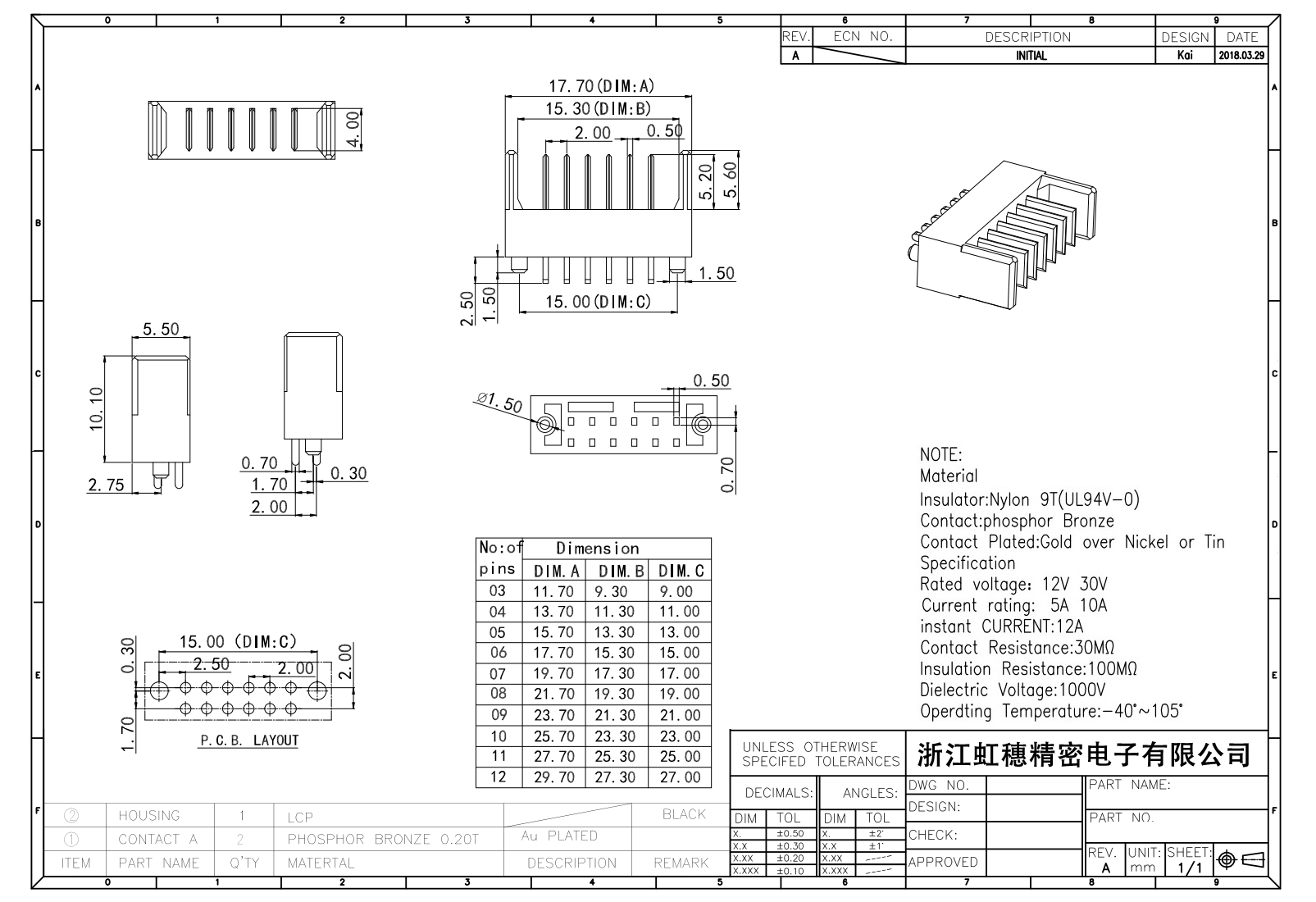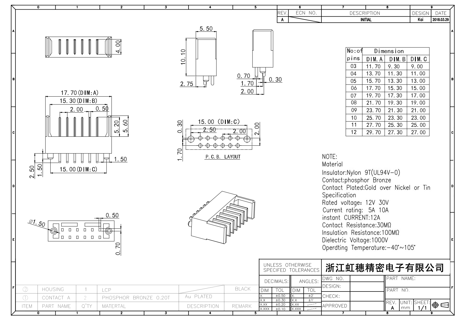絕緣主體:Nylon 6T/9TUL94V-0