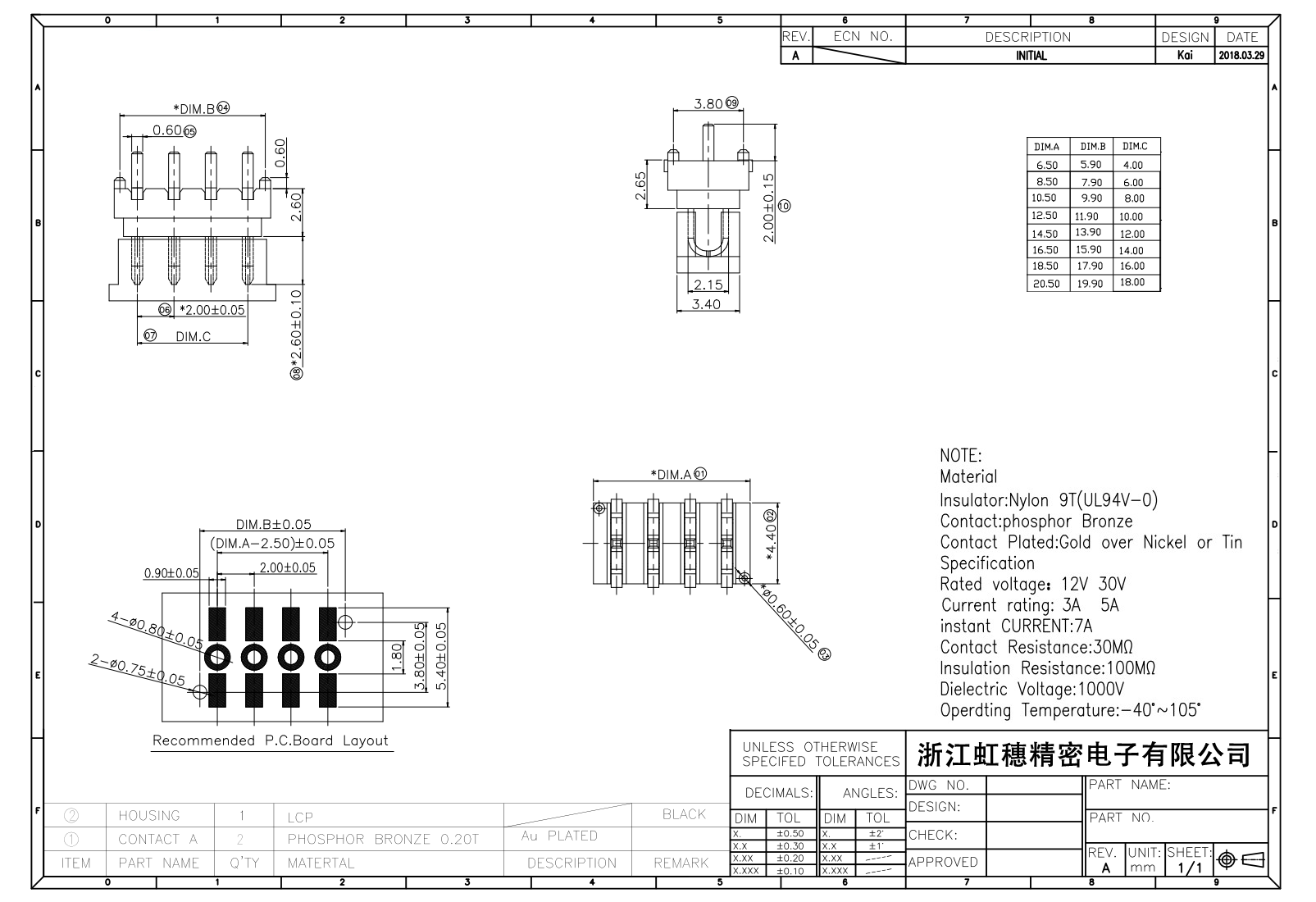 表面鍍層:金在鎳/錫之上,鍍層厚度3U″