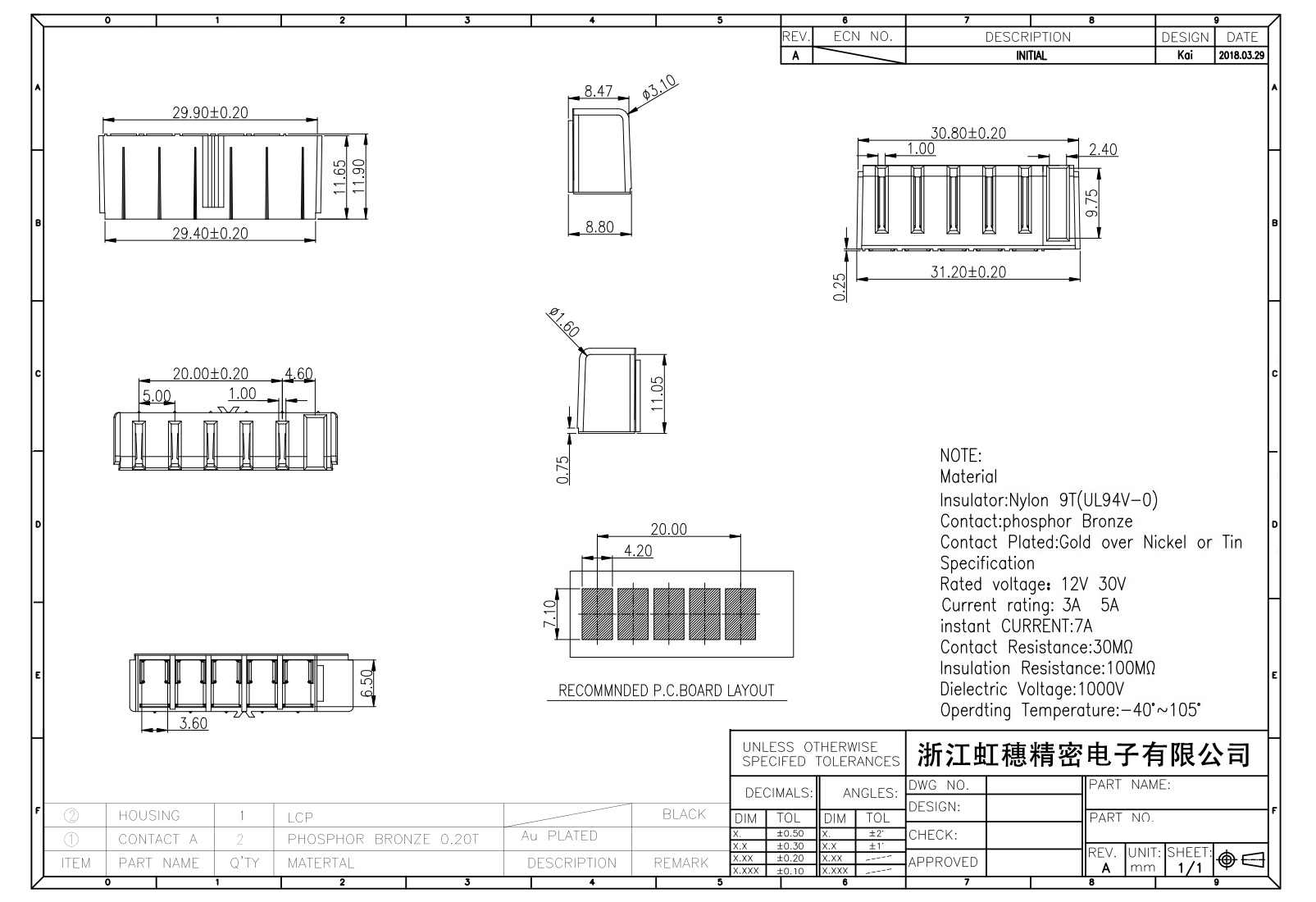 絕緣主體:Nylon 6T/9TUL94V-0