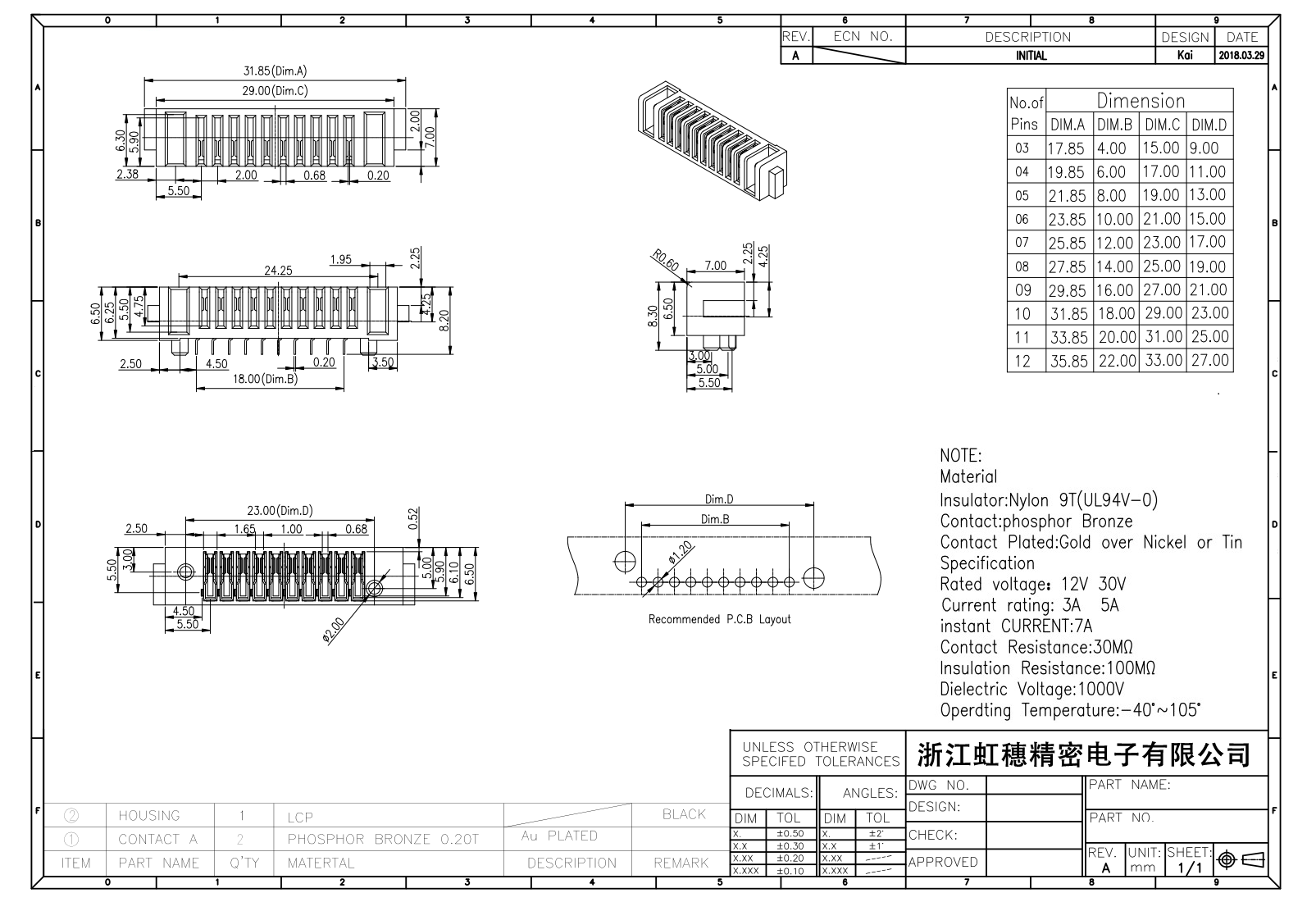 絕緣主體:Nylon 6T/9T(UL94V-0)