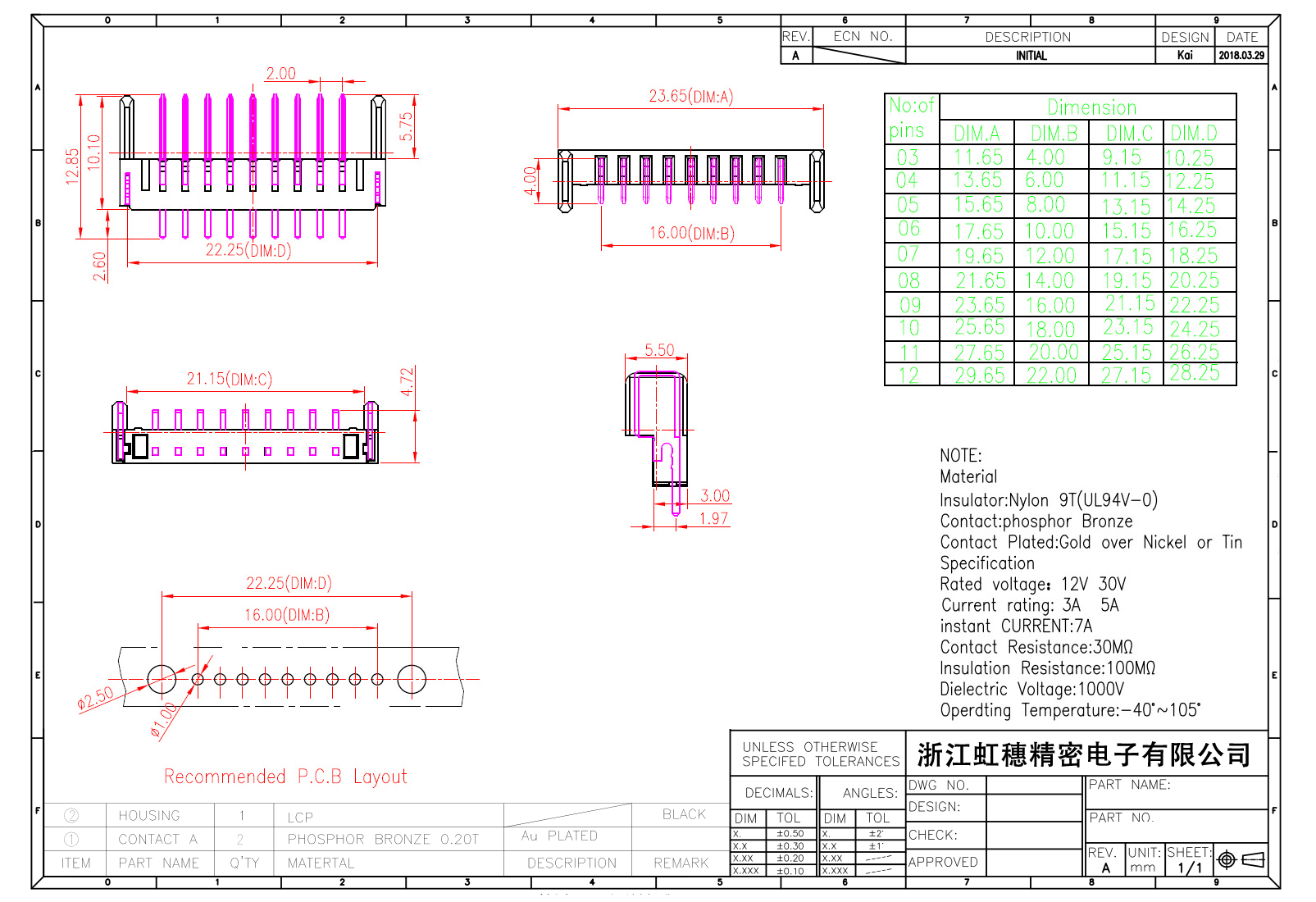 絕緣主體:Nylon 6T/9TUL94V-0