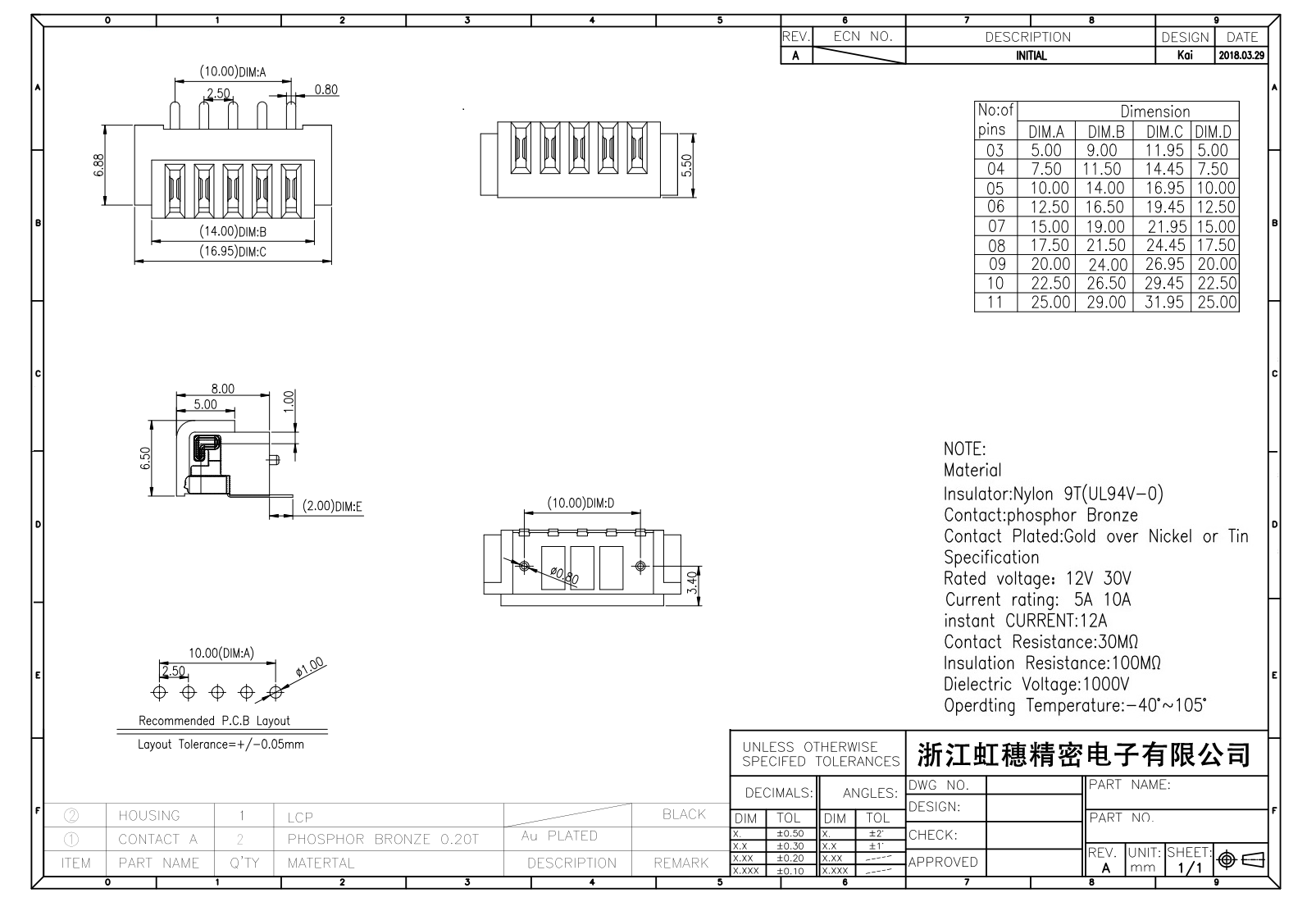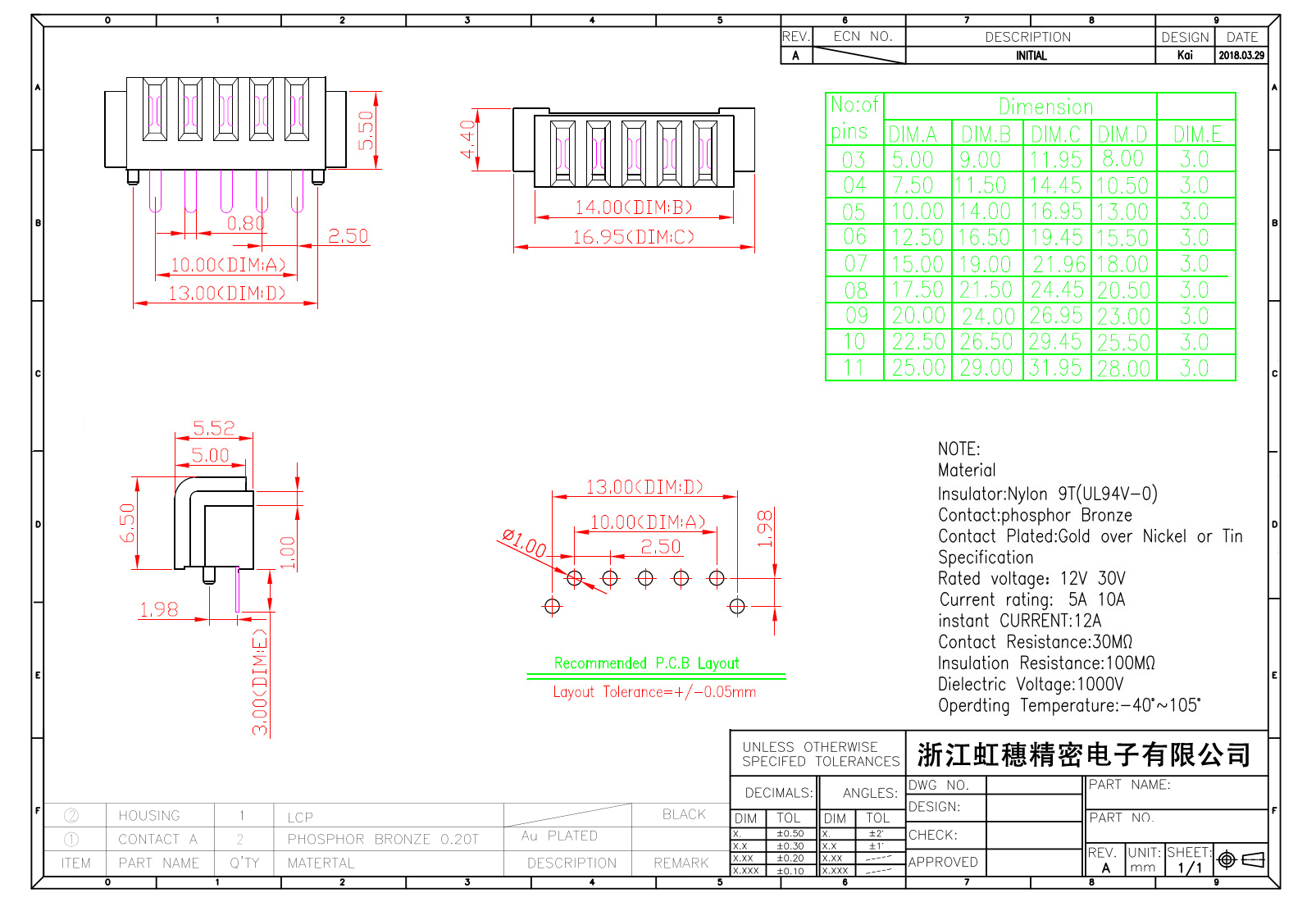 絕緣主體:Nylon 6T/9TUL94V-0