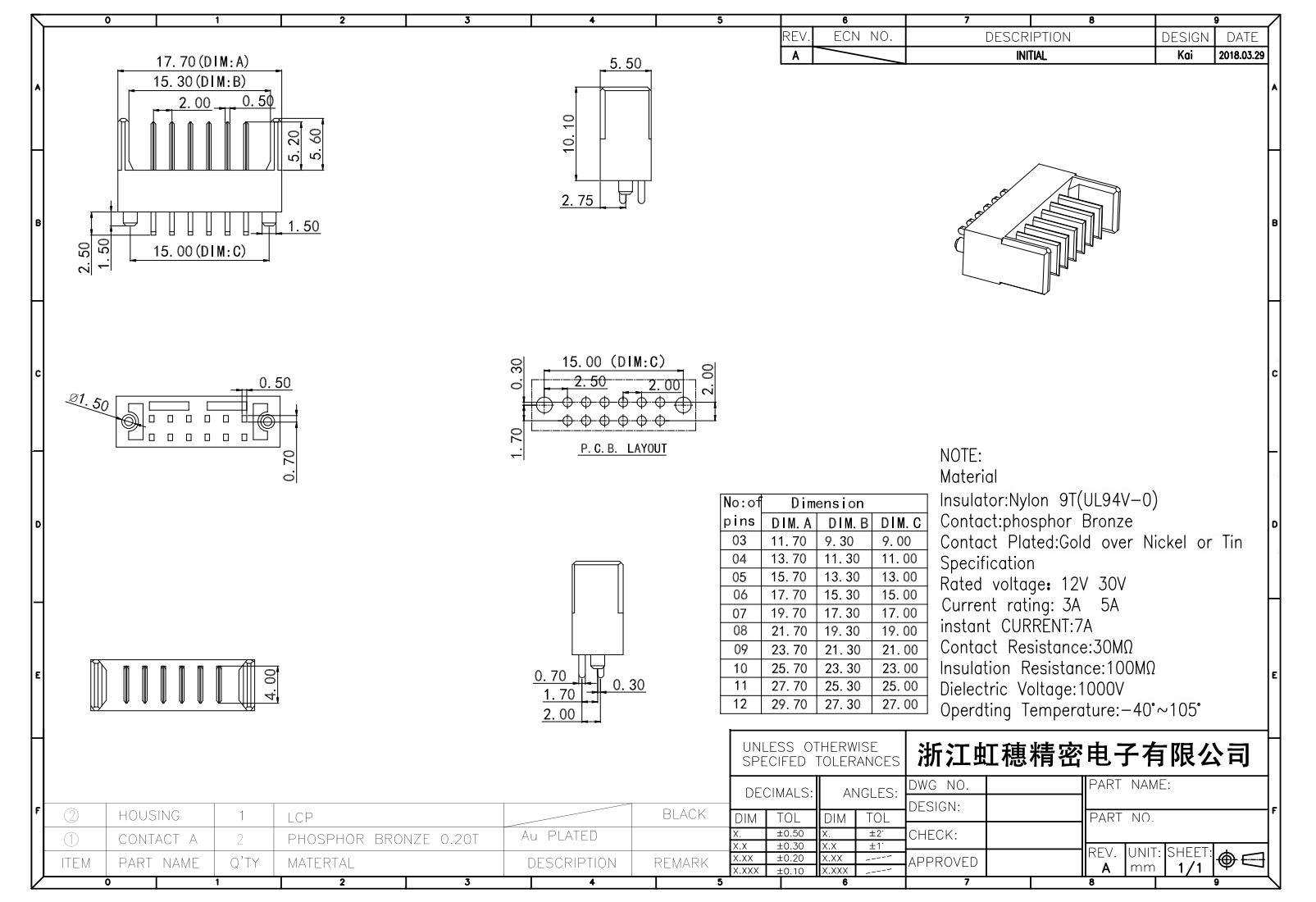 絕緣主體:Nylon 6T/9TUL94V-0