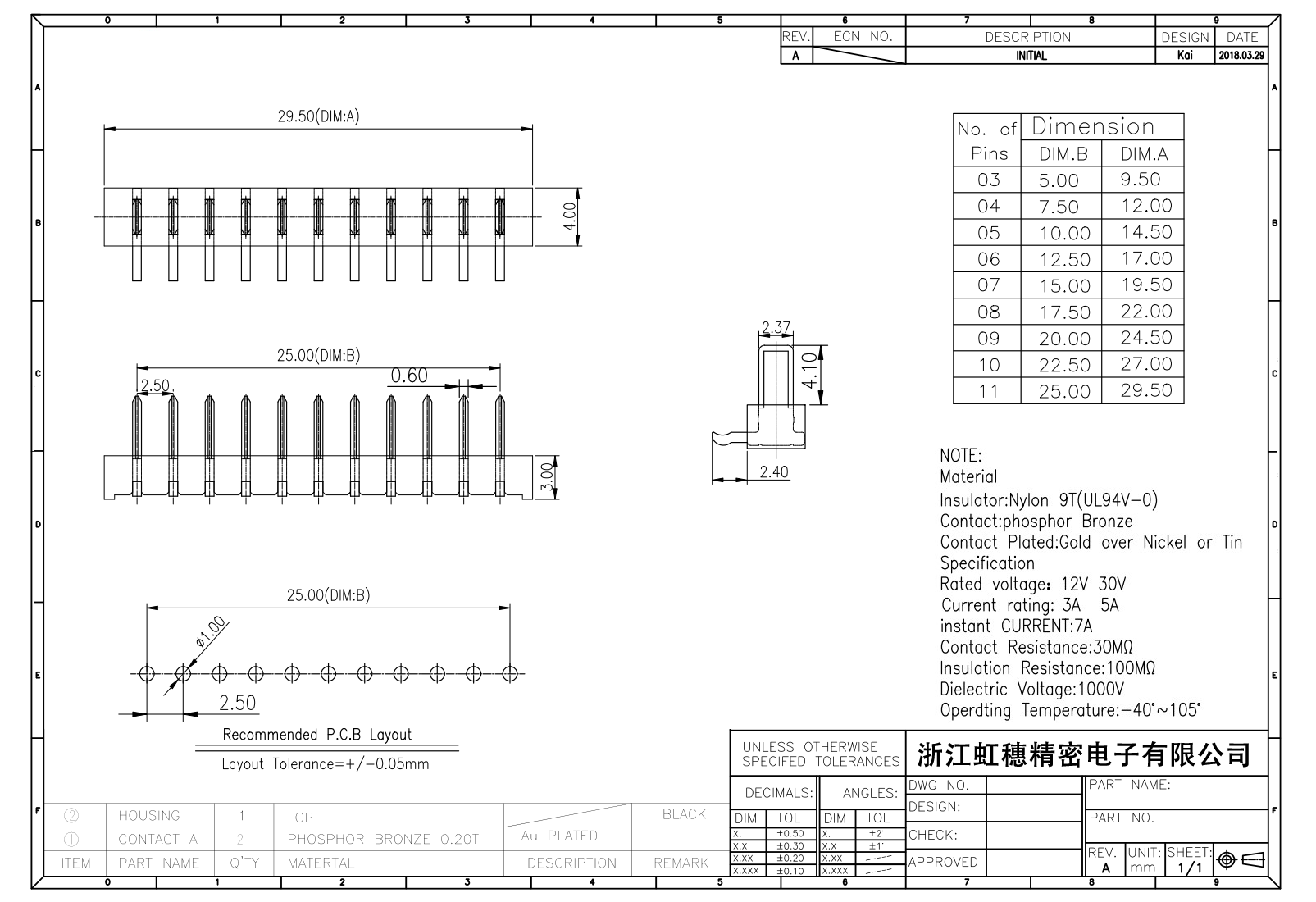 絕緣主體:Nylon 6T/9T(UL94V-0)