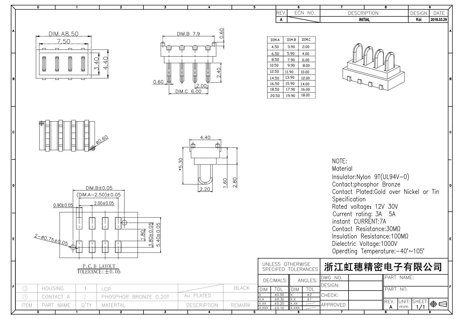 表面鍍層:金在鎳/錫之上,鍍層厚度3U