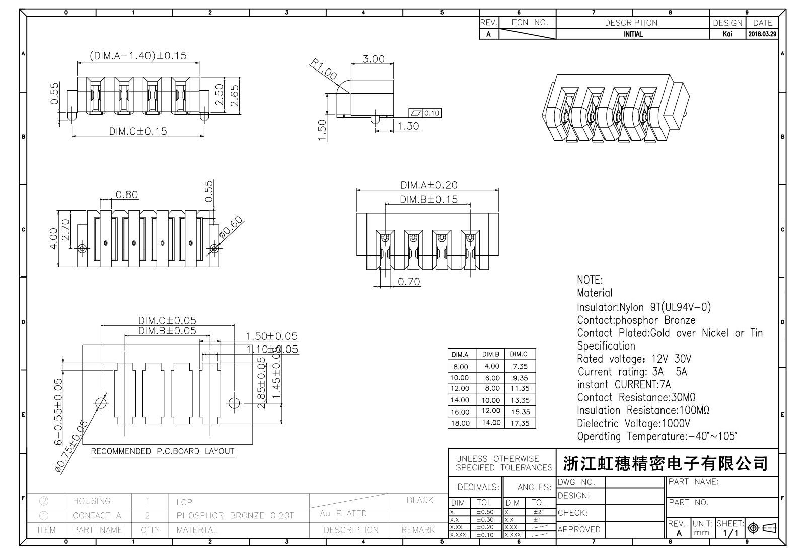 表面鍍層:金在鎳/錫之上,鍍層厚度3U