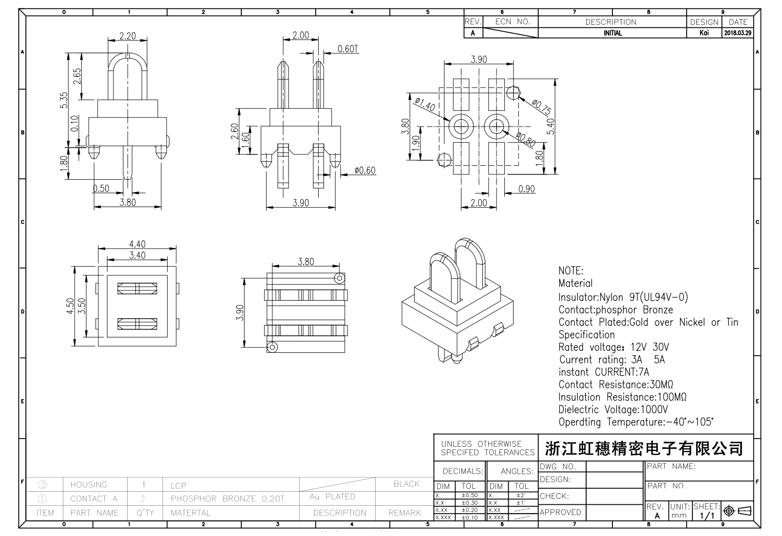 絕緣主體:Nylon 6T/9TUL94V-0