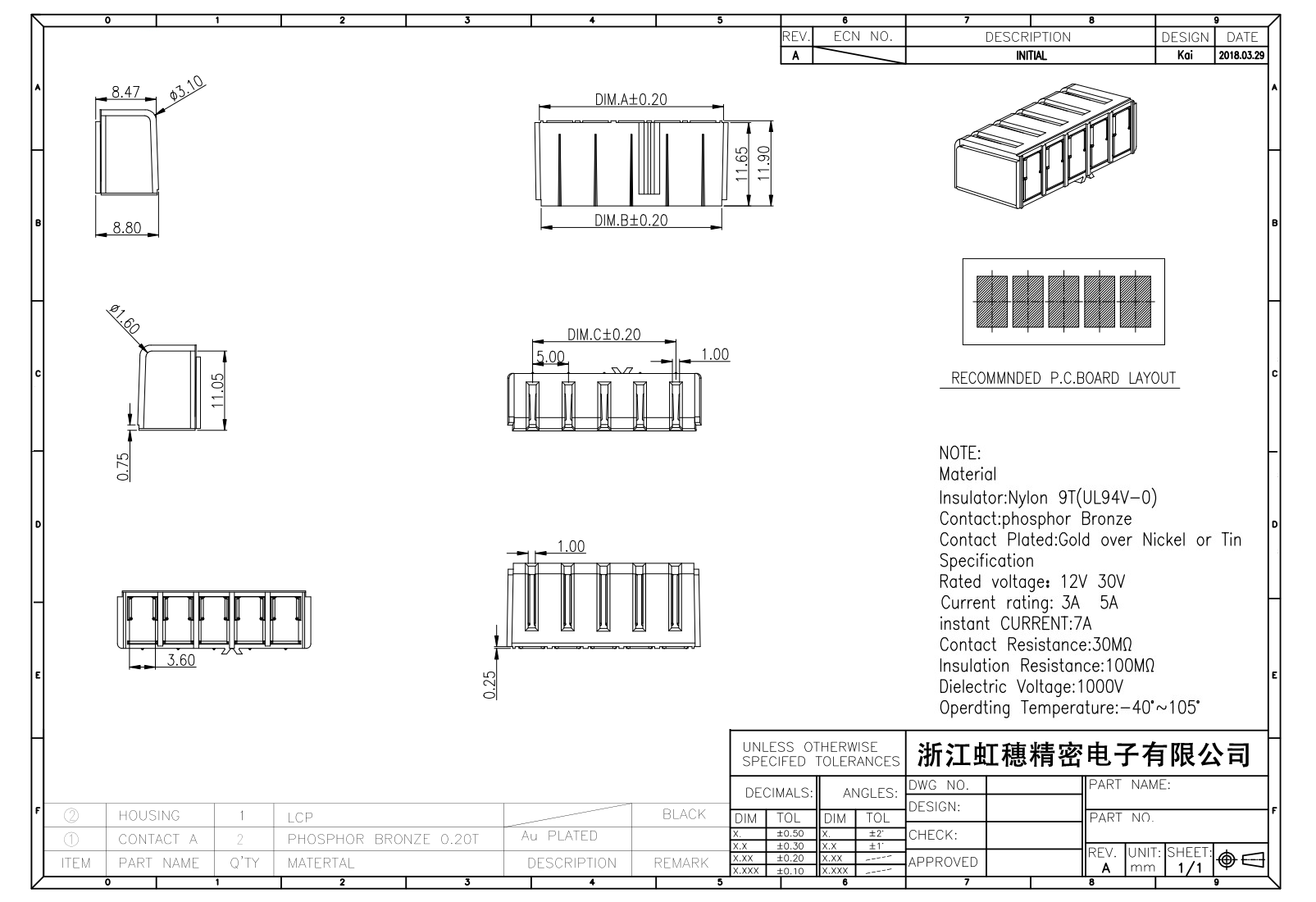 表面鍍層:金在鎳/錫之上,鍍層厚度3U