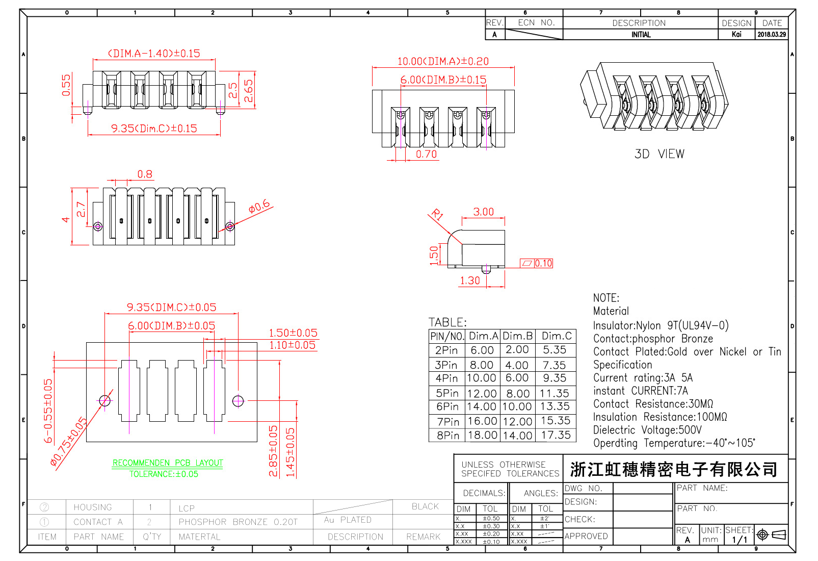 絕緣主體:Nylon 6T/9T(UL94V-0)