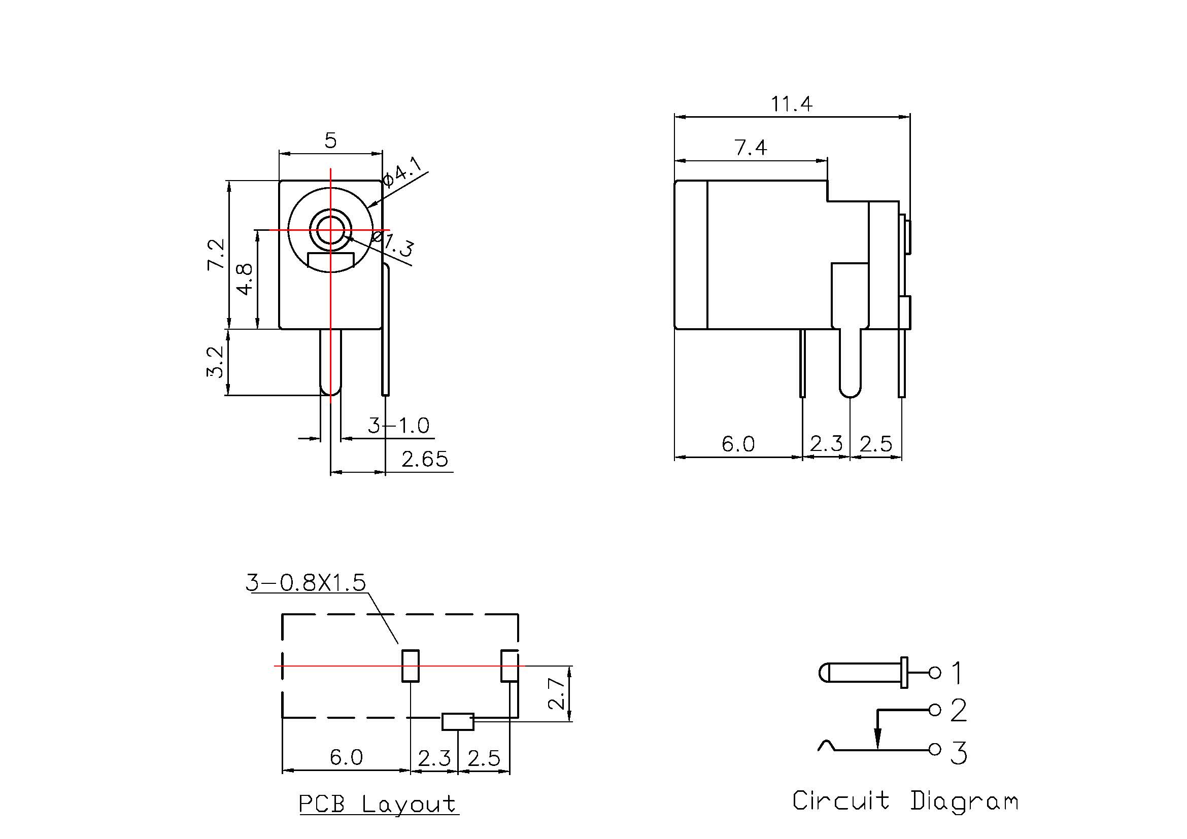 DC插座 DC002D DC電源母座Φ1.0mmΦ1.3mm立式直插3腳