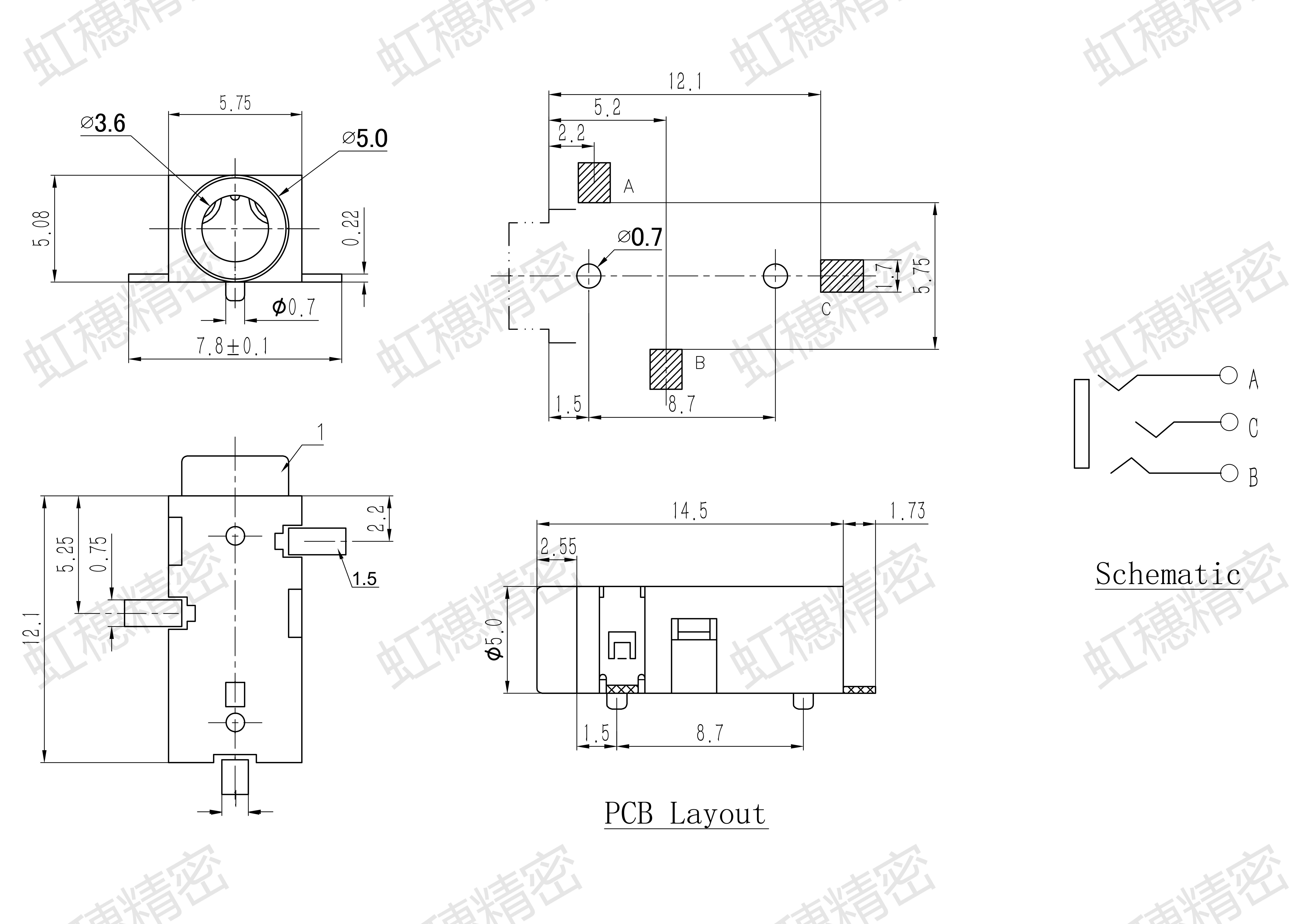 1. 額定電流、電壓: DC 30V 0.5A 2. 接觸電阻: ≤100mΩMAX