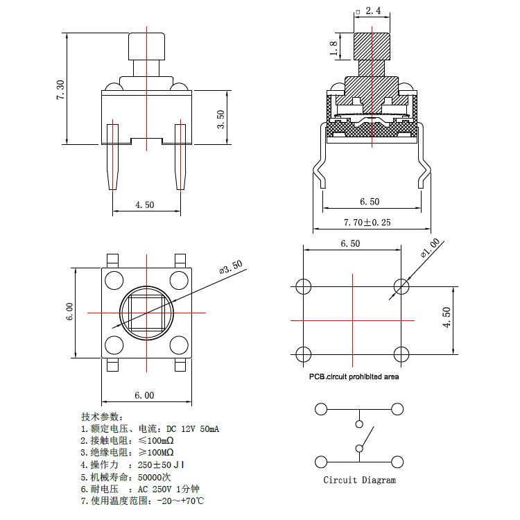 規格:6mm*6mm*7 ? ? ? ? ? ? ? ? ?力度:250士50gf