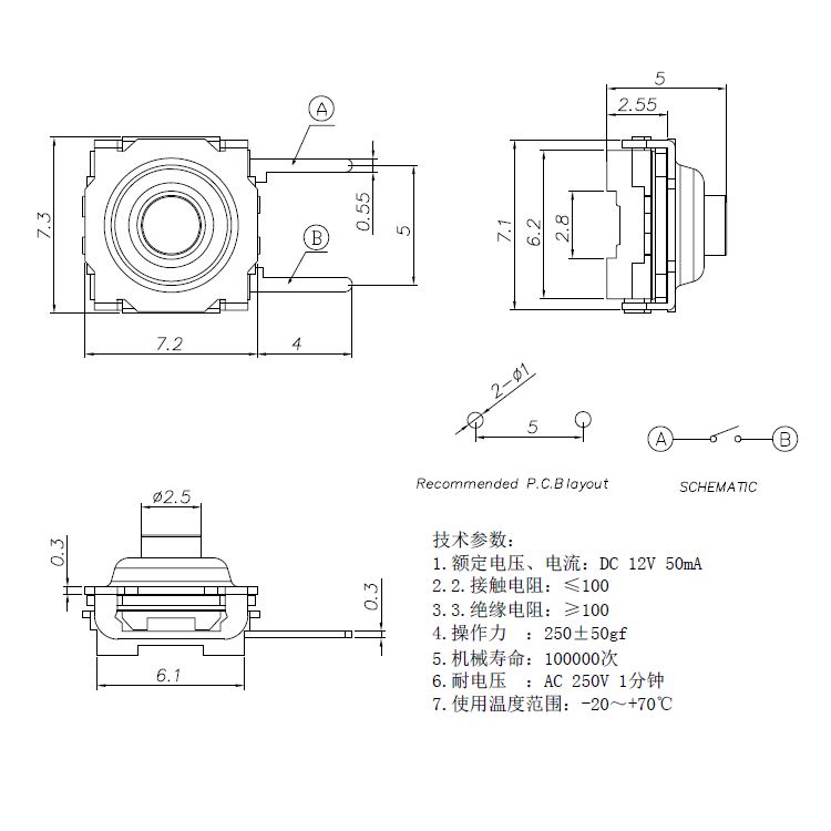 輕觸開關技術參數: