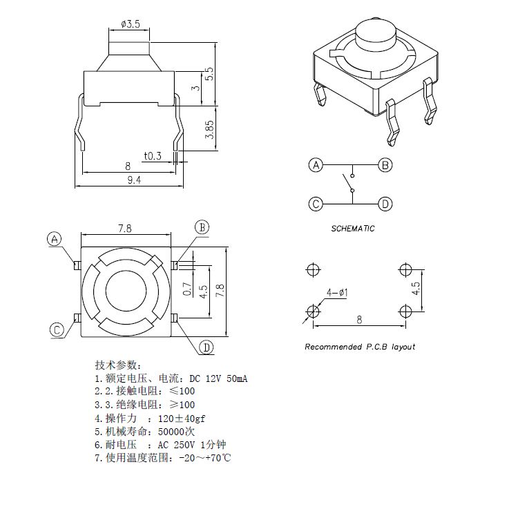 輕觸開關技術參數: