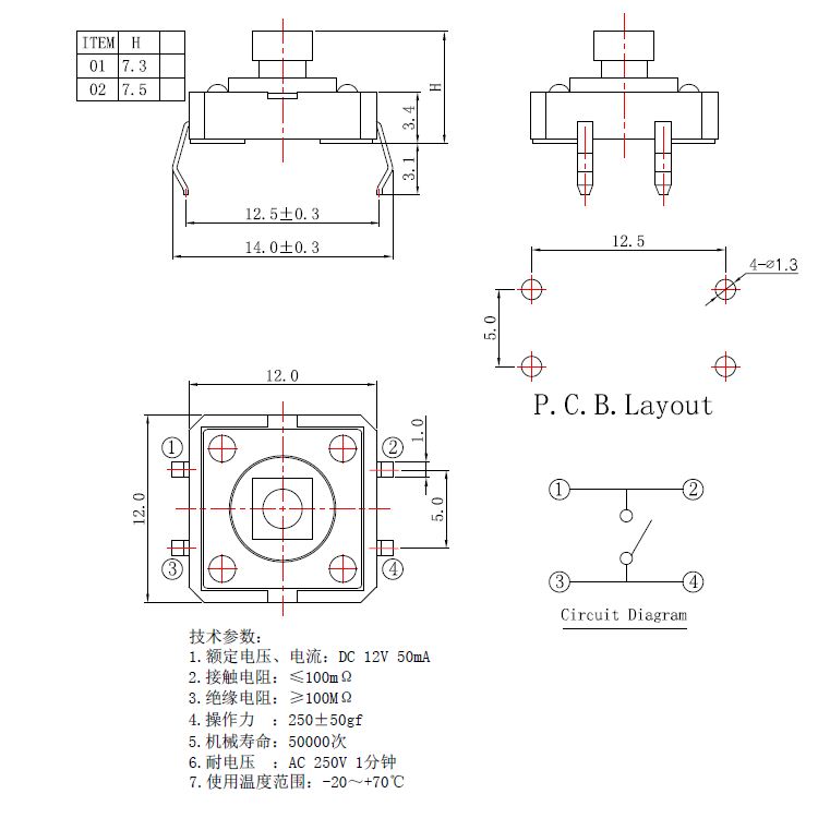 規(guī)格:12mm*12mm ? ? ? ? ? ? ? ? ?力度:250士50gf