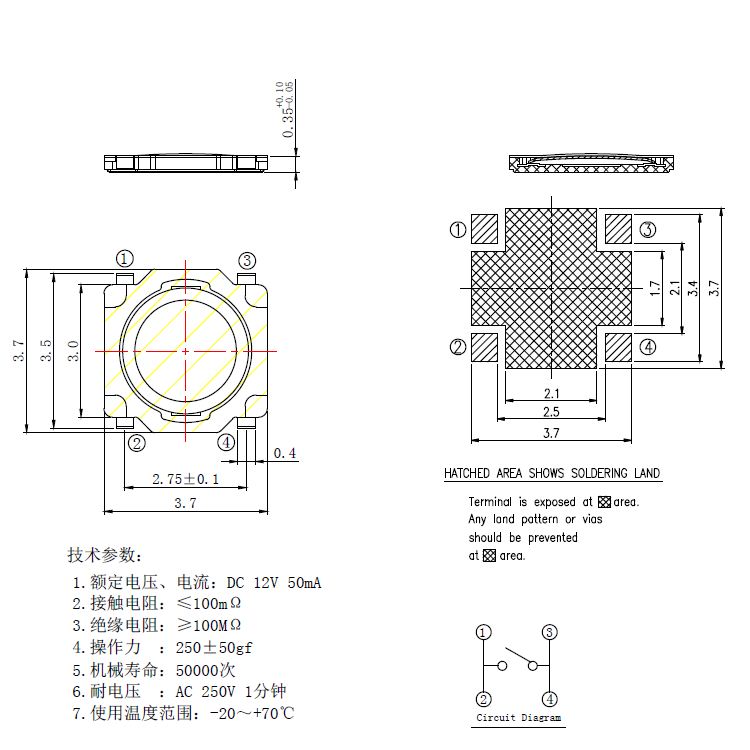 規格:3.7mm*3.7mm ? ? ? ? ? ? ? ? ?力度:250士50gf