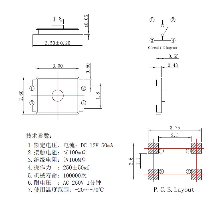 輕觸開關技術參數: