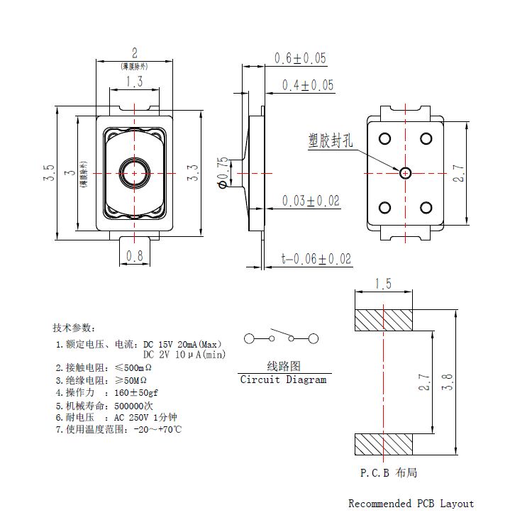 規格:2mm*3mm ? ? ? ? ? ? ? ? ?力度:160士50gf