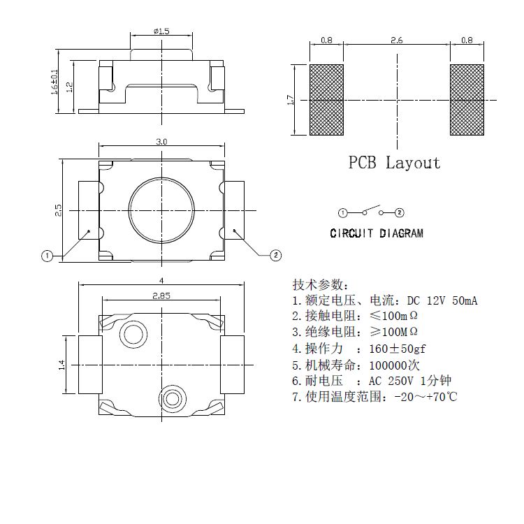 規格:2.4mm*2.8mm ? ? ? ? ? ? ? ? ?力度:160士50gf