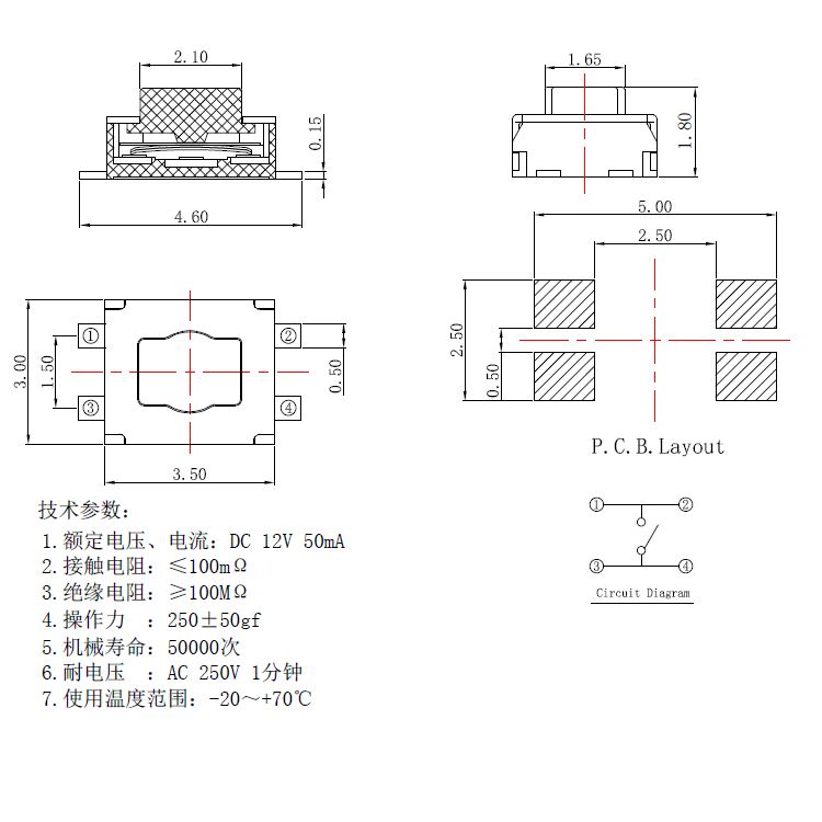 輕觸開關技術參數: