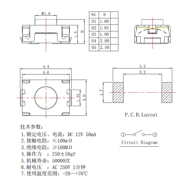 輕觸開關技術參數: