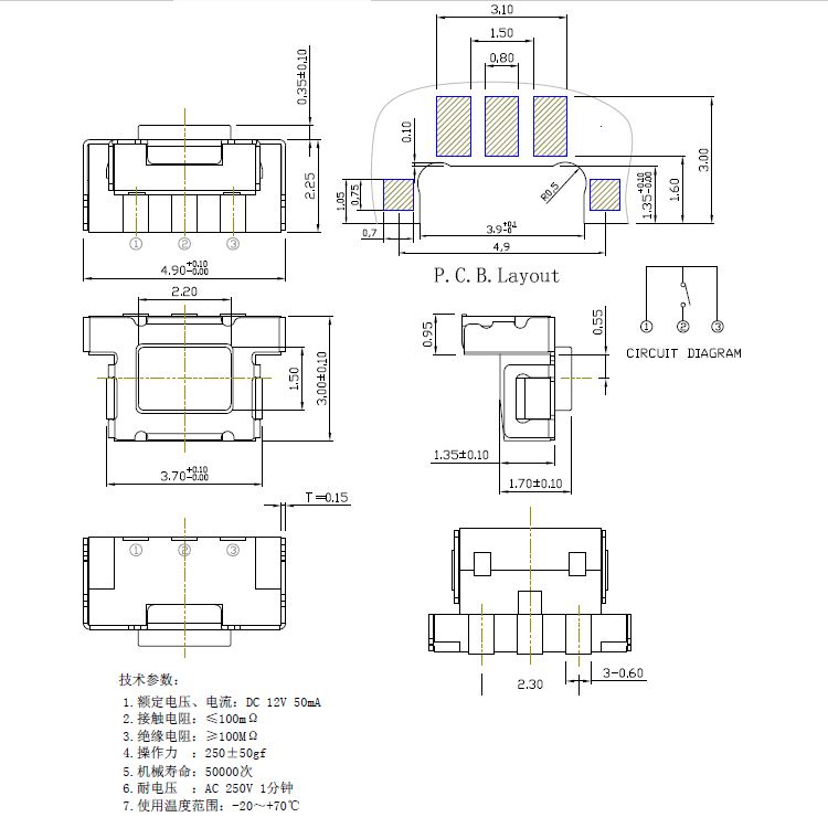 規(guī)格:3mm*5mm ? ? ? ? ? ? ? ? ?力度:250士50gf