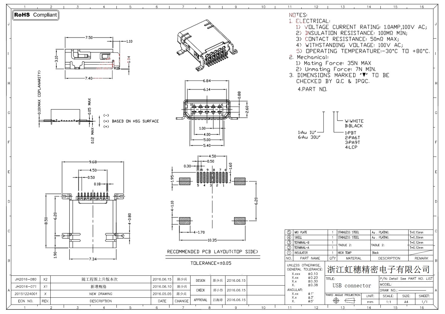 MINI USB插座技術參數:
