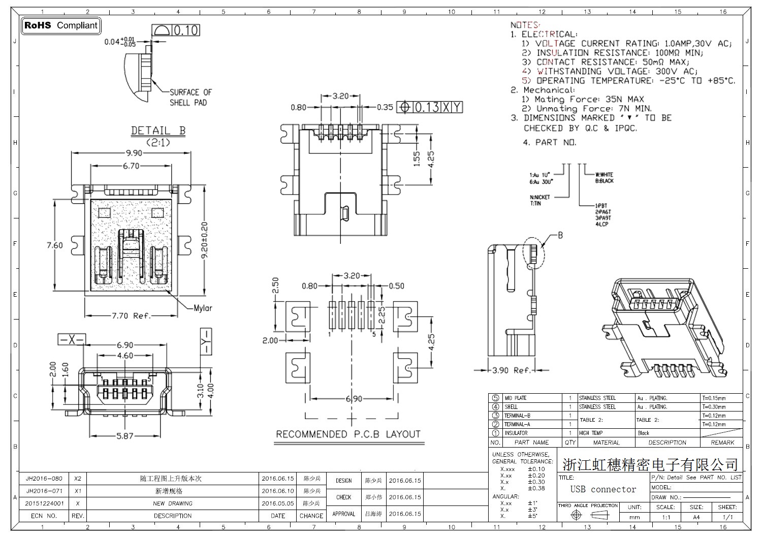 MINI USB插座技術參數: