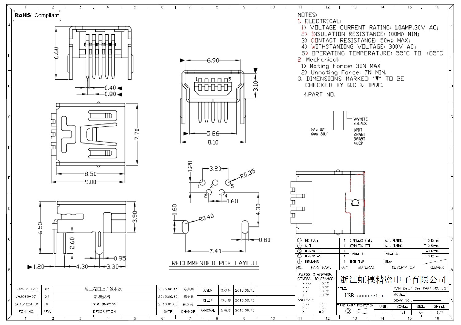 MINI USB插座技術(shù)參數(shù):