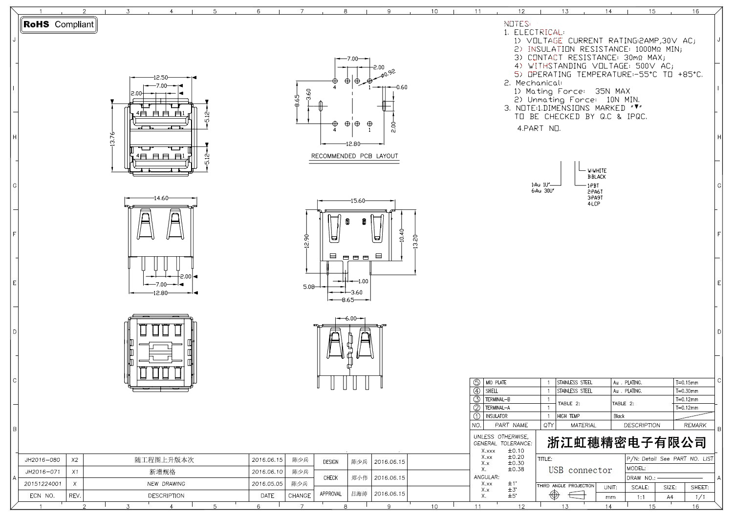 2.0USB插座技術參數(shù):