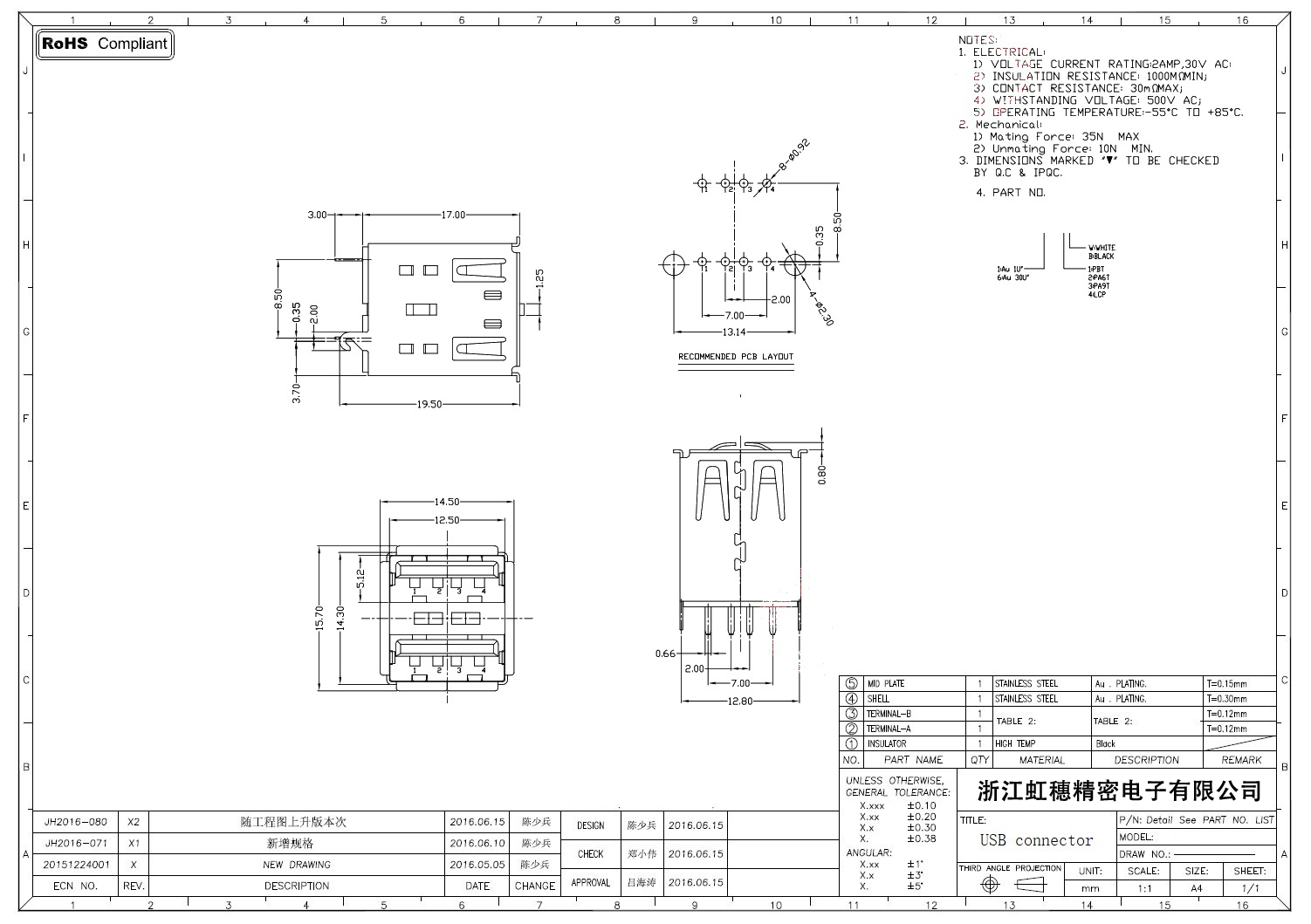 2.0USB插座技術(shù)參數(shù):