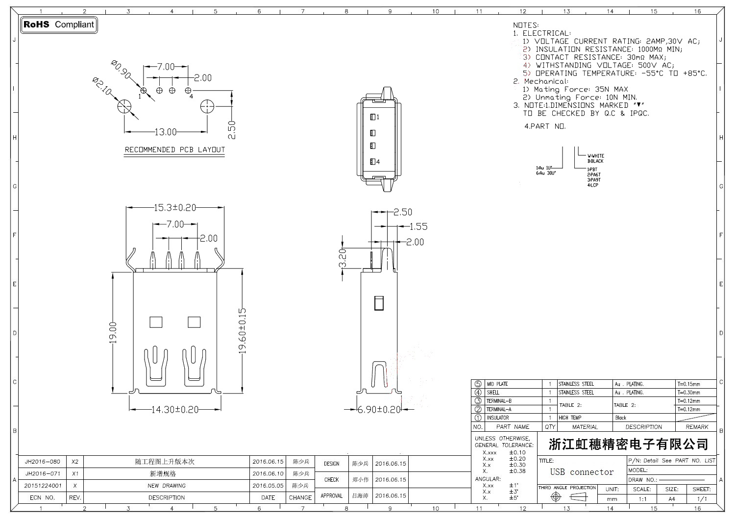 Product name:  USB 2.0 Jack connector