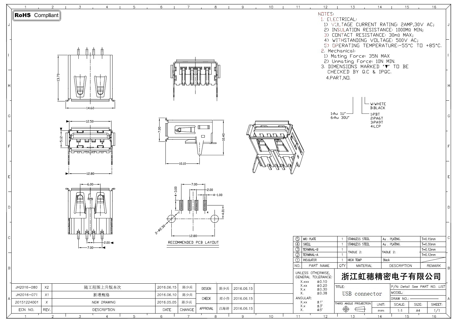 Product name:  USB 2.0 Jack connector