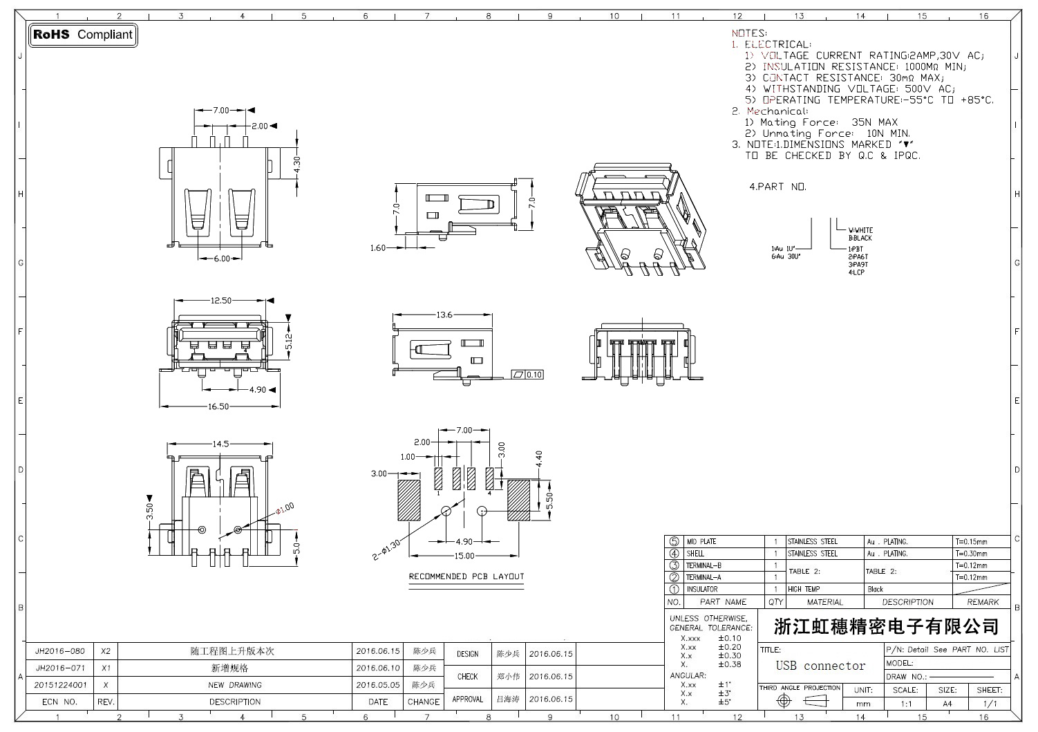 Product name:  USB 2.0 Jack connector