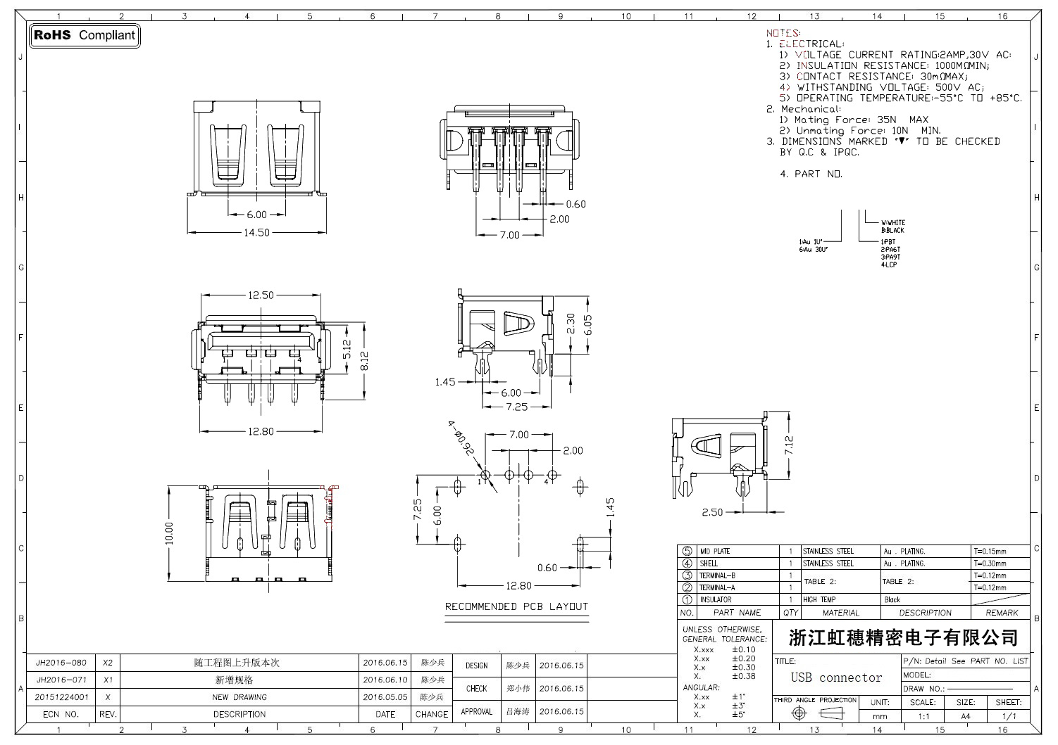 Product name:  USB 2.0 Jack connector
