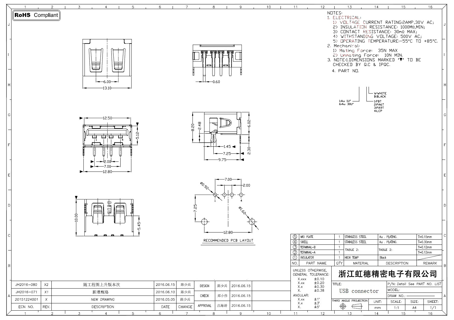 Product name:  USB 2.0 Jack connector