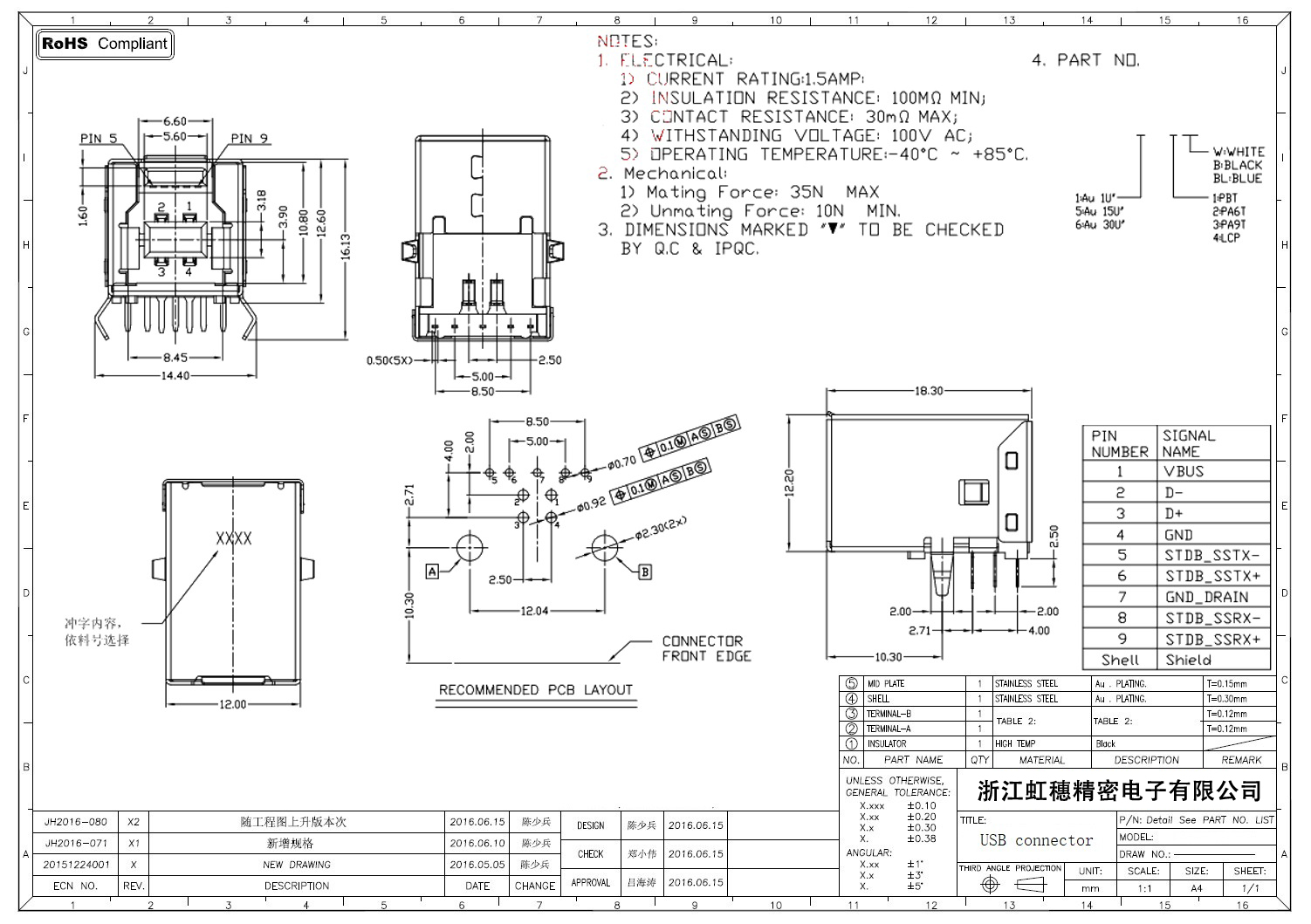 3.0USB插座技術參數: