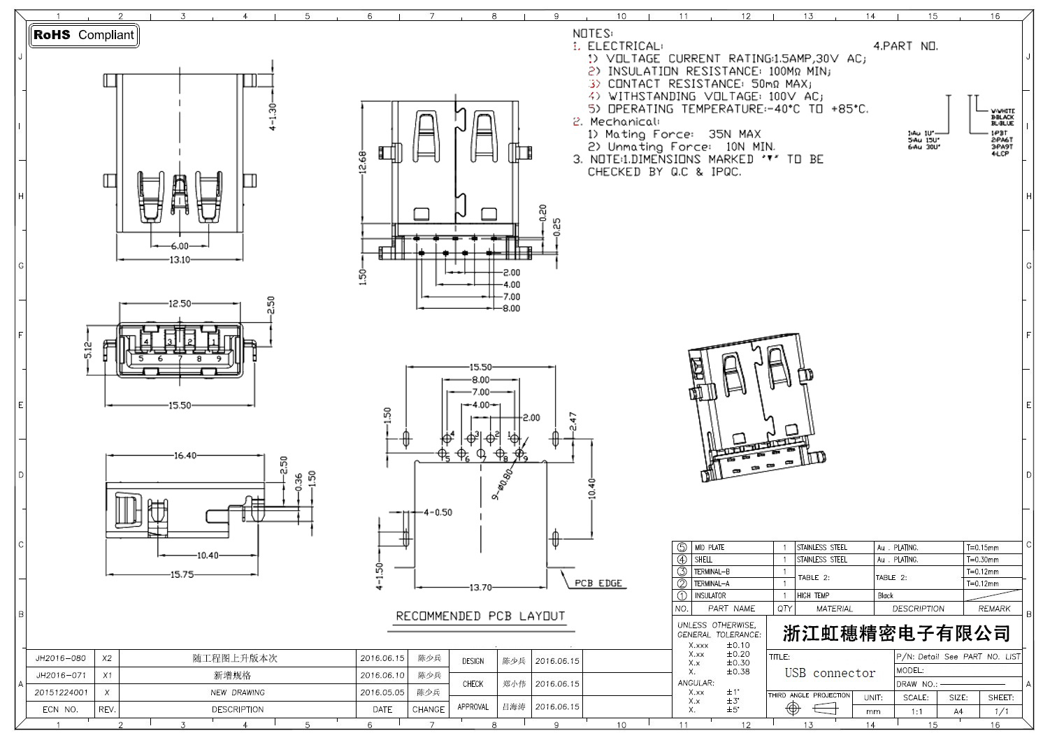 3.0USB插座技術參數: