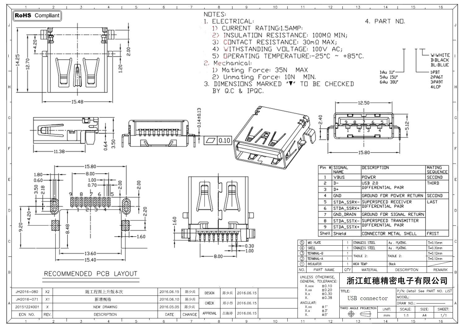 3.0USB插座技術(shù)參數(shù):