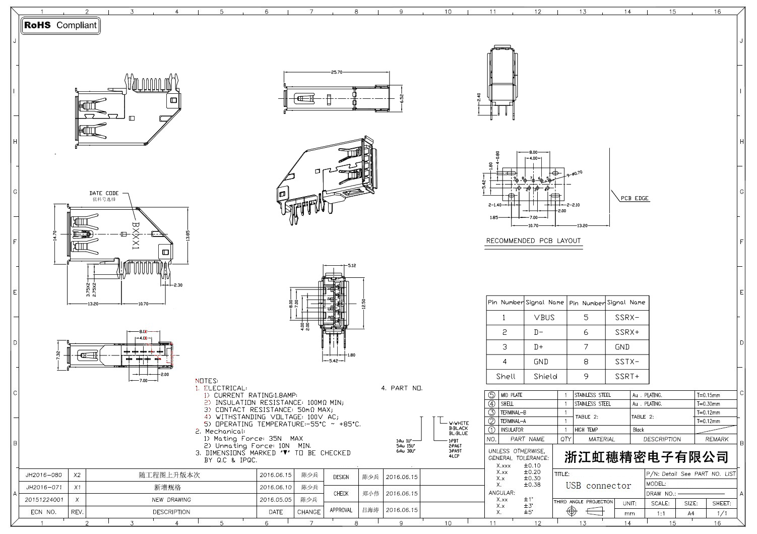 3.0USB插座技術(shù)參數(shù):
