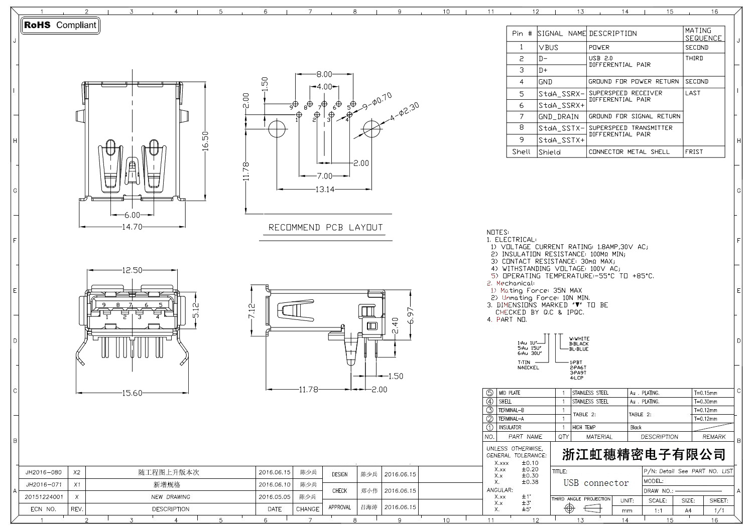 3.0USB插座技術參數: