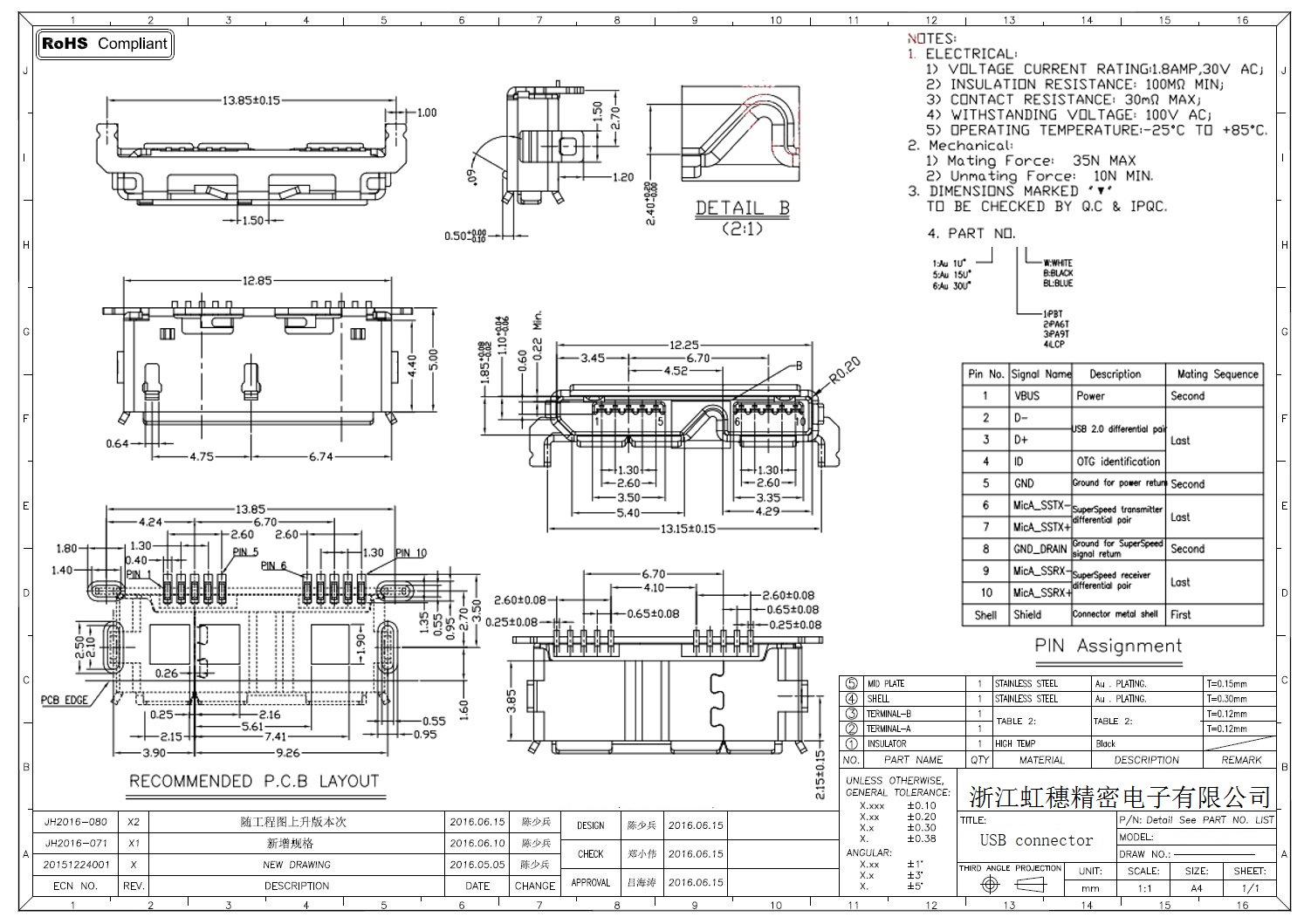 MICRO USB插座技術(shù)參數(shù):