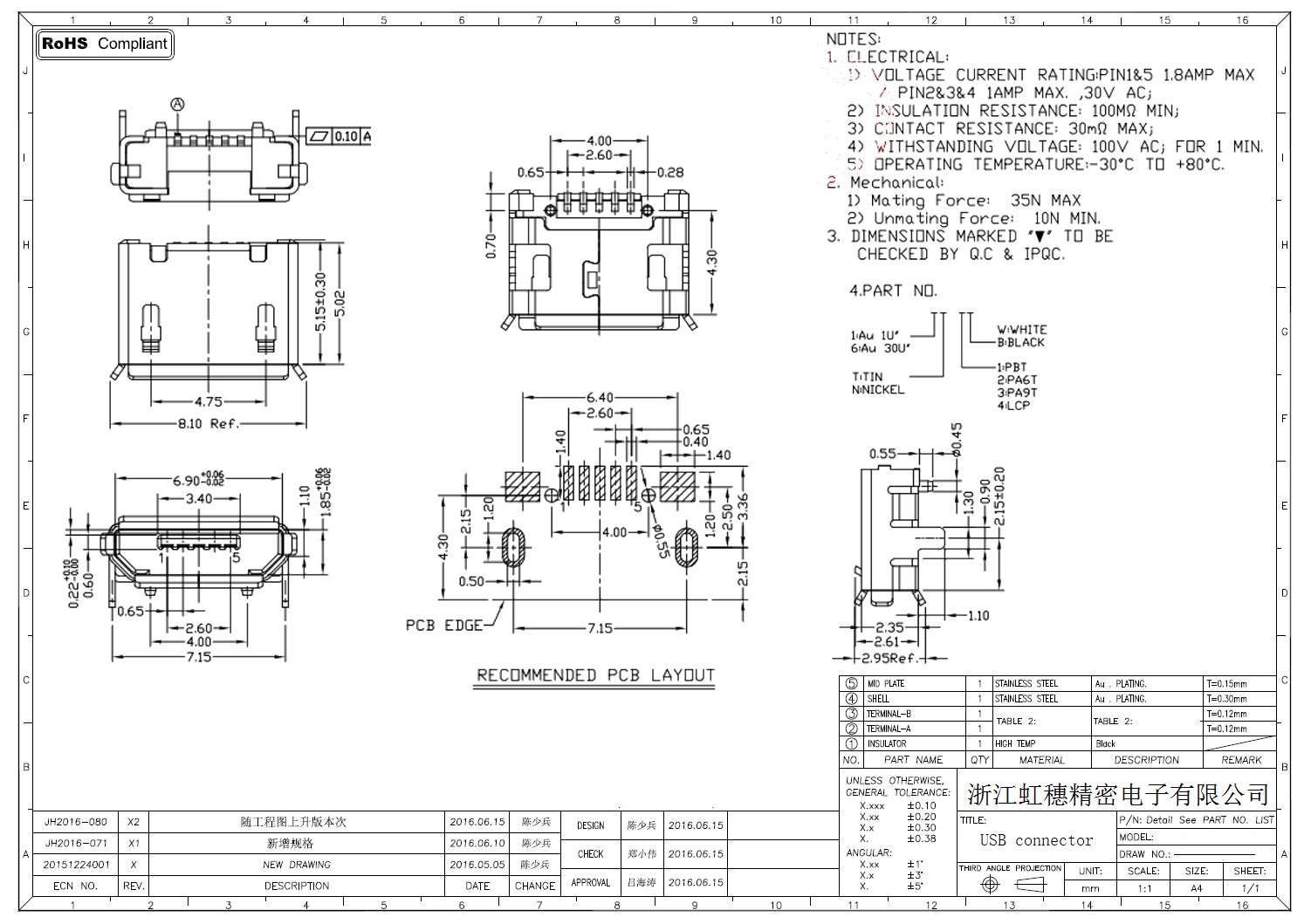 MICRO USB插座技術(shù)參數(shù):