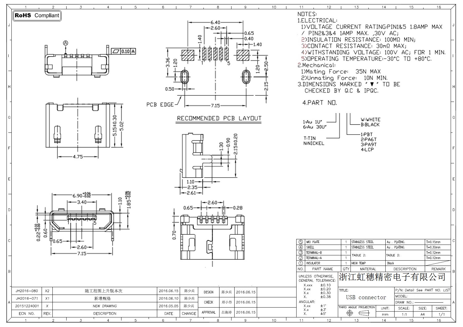MICRO USB插座技術(shù)參數(shù):