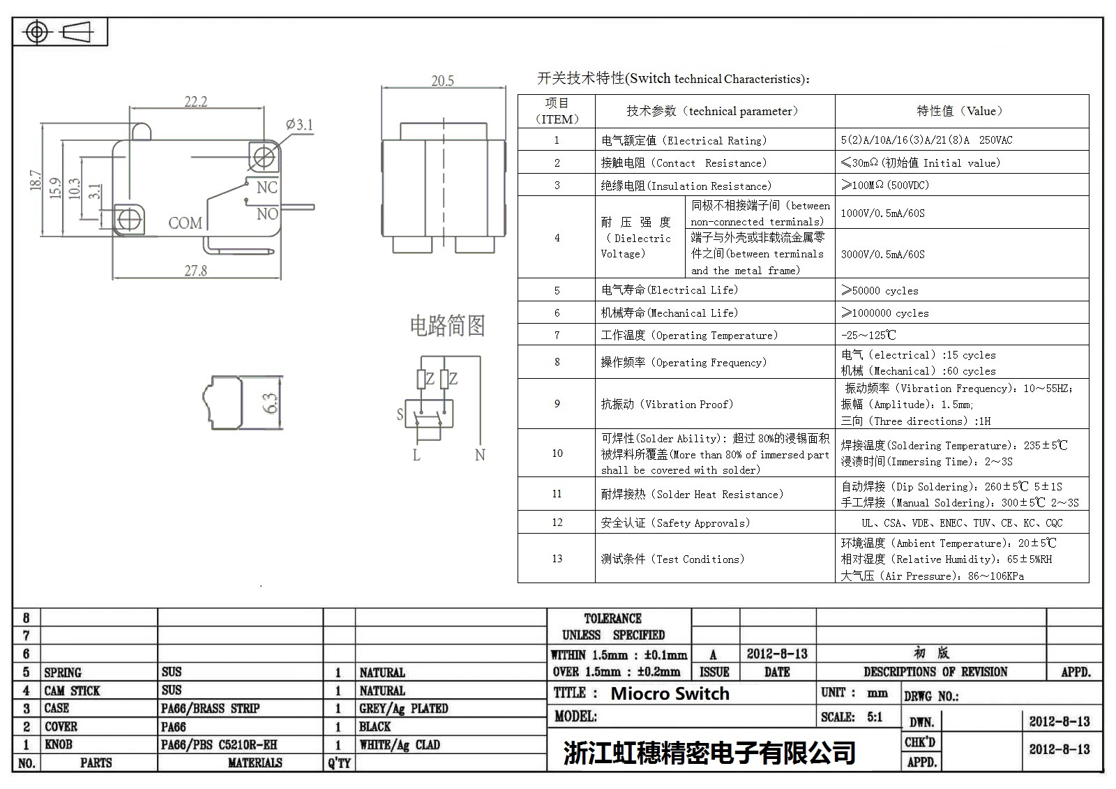 一.請(qǐng)根據(jù)額定值電流、操作負(fù)載、驅(qū)動(dòng)桿的種類、使用溫度等要求選擇合適型號(hào)的開關(guān);