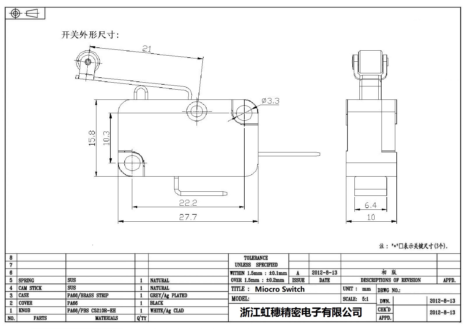 一.請根據額定值電流、操作負載、驅動桿的種類、使用溫度等要求選擇合適型號的開關;