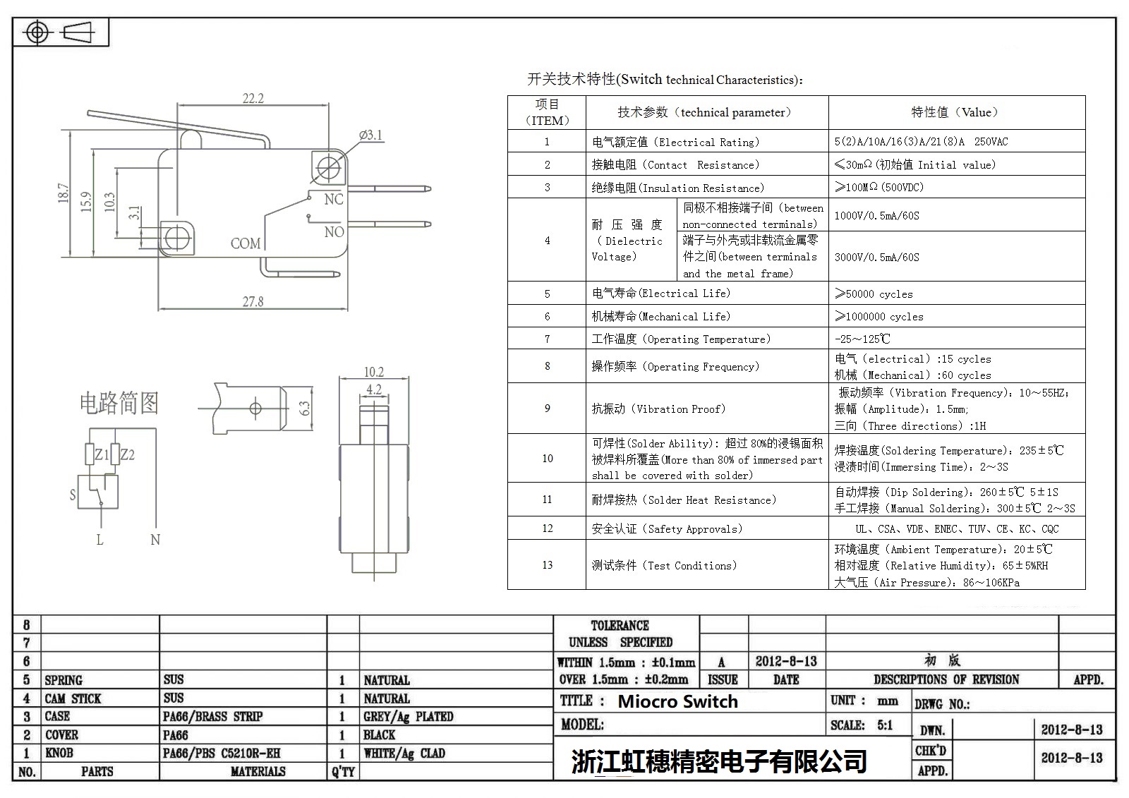 微動開關電氣特性